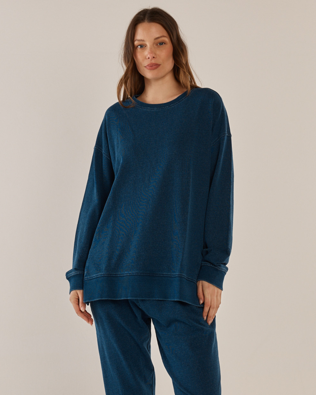 A crew neck is an autumn essential, and this indigo wash sweatshirt strikes the perfect balance of cosy and chic. Pair with denim or relaxed pants for an easy weekend look.