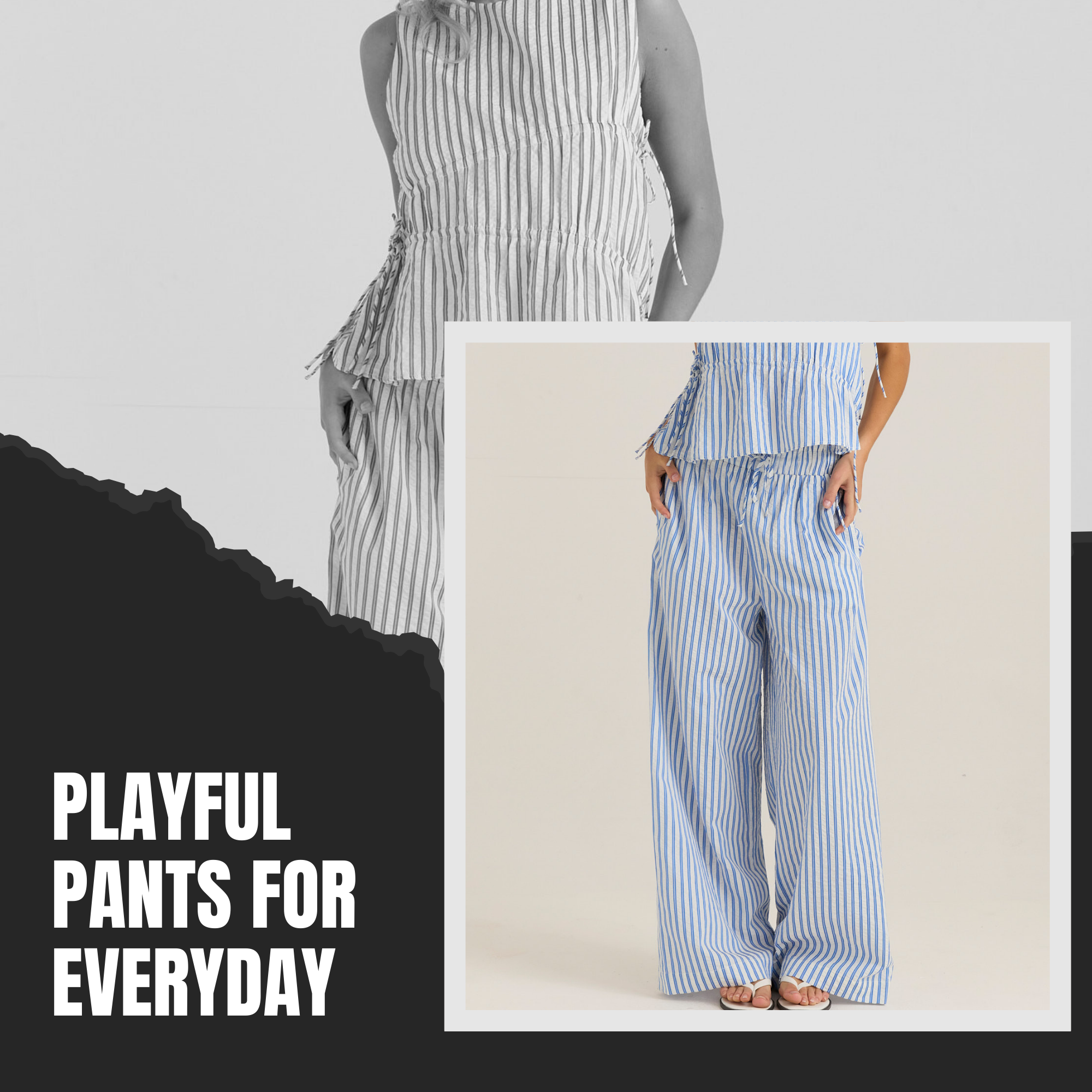 Aziza Pants in Blue White Stripe by Sass – Bringing a little pattern into your day, these breezy striped pants are ideal for relaxed weekends or casual days at the office. Pair with a simple tee or knit.