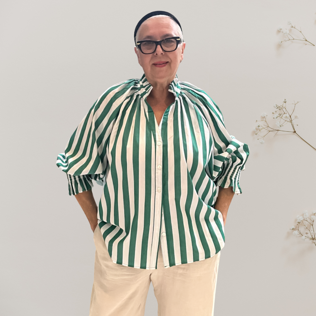 KL921 Top in Green – Stripe Statement